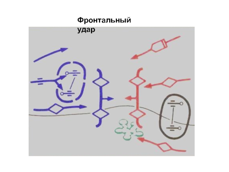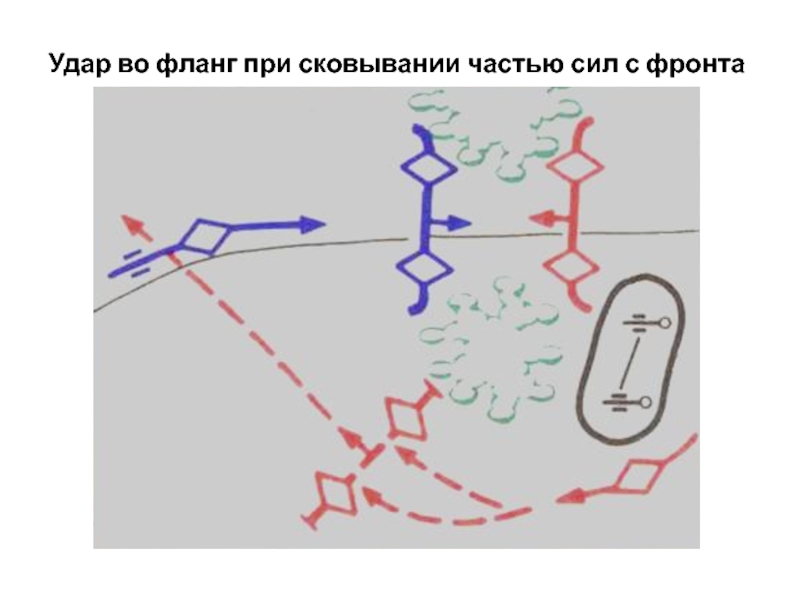 Слайд 21Удар во фланг при сковывании частью сил с фронта