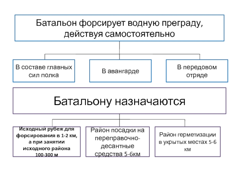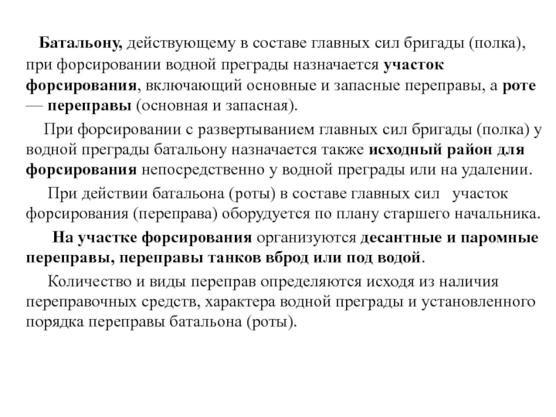 Слайд 8 Для организованного форсирования водной преграды батальону