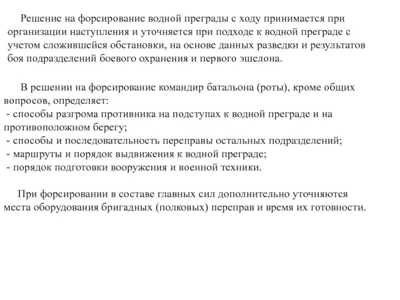 Слайд 10 Решение на форсирование водной преграды с ходу