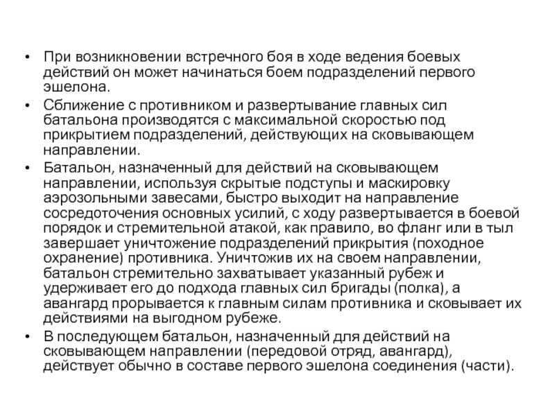 Слайд 24При возникновении встречного боя в ходе ведения боевых действий он