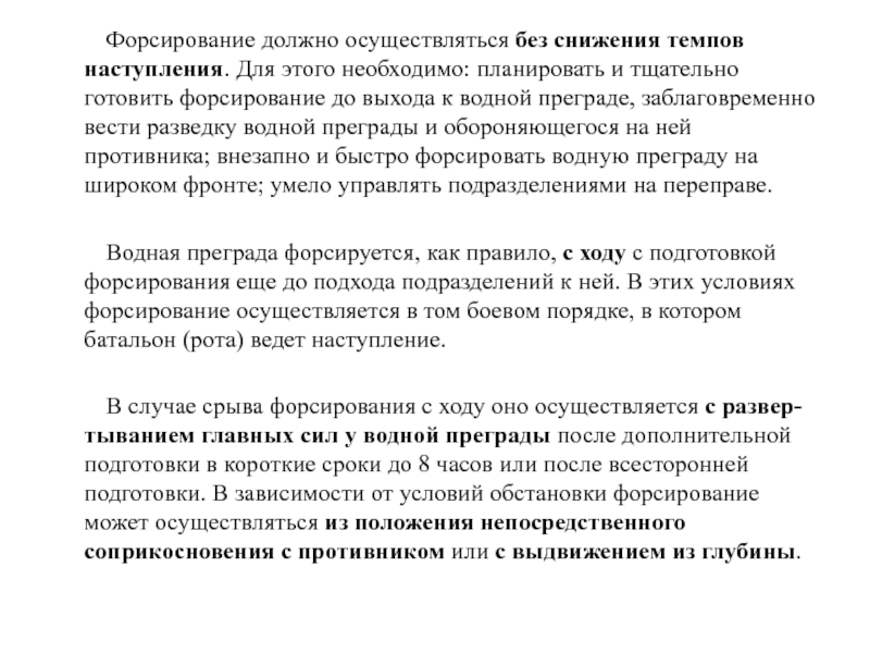 темпов наступления. Для этого необходимо: планировать и тщательно готовить форсирование