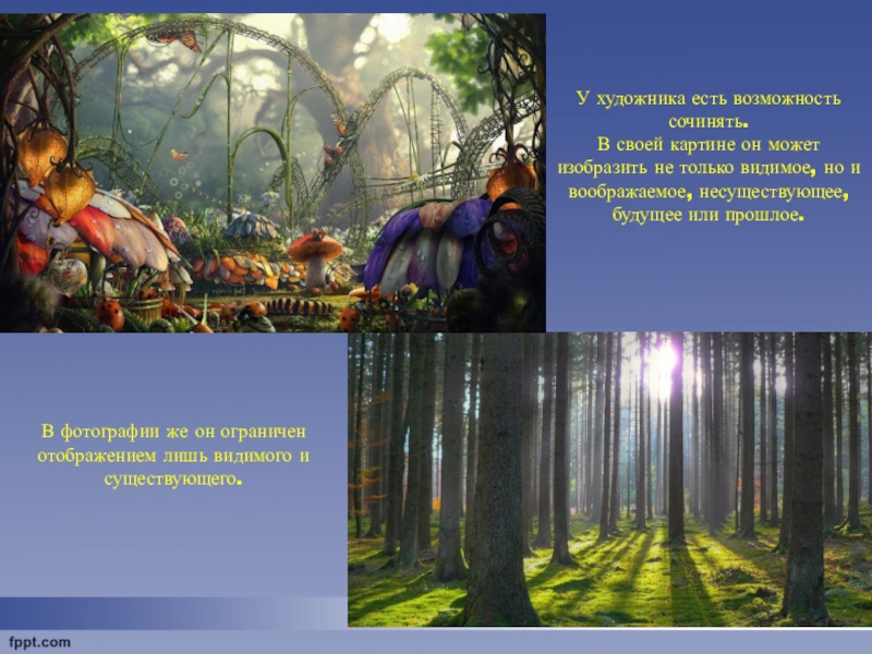 Слайд 20В фотографии же он ограничен отображением лишь видимого и существующего.