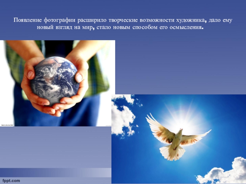 Слайд 3Появление фотографии расширило творческие возможности художника, дало ему новый взгляд