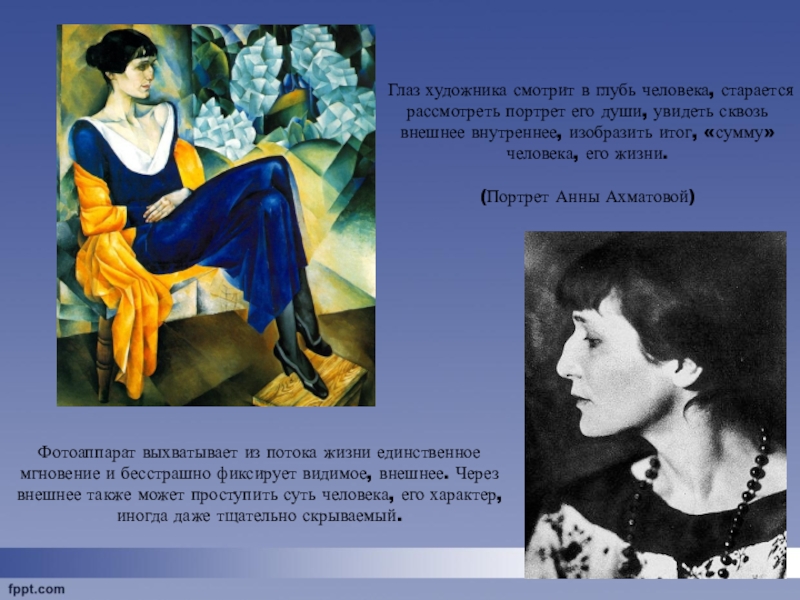 Слайд 19Глаз художника смотрит в глубь человека, старается рассмотреть портрет его