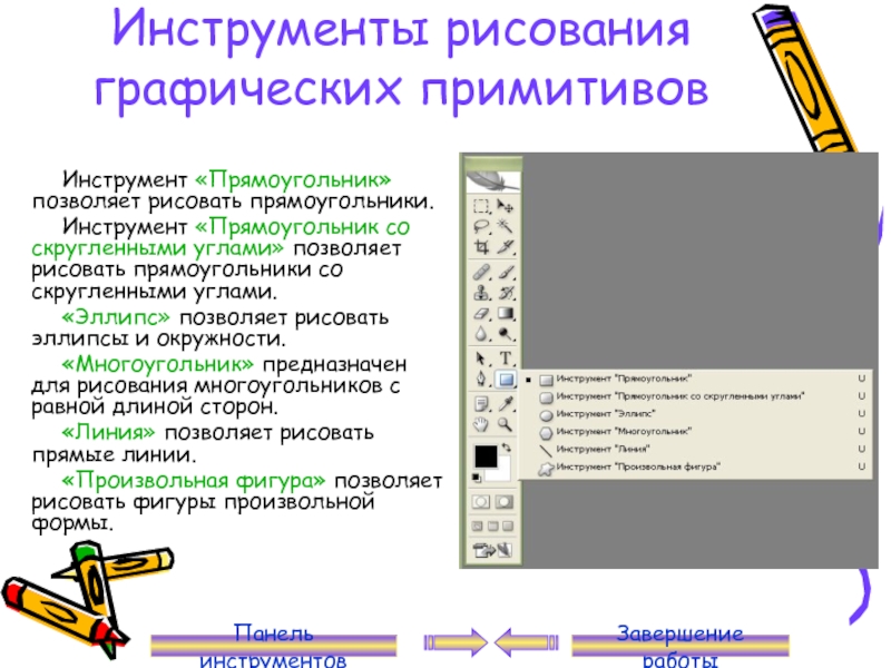 Рисование с использованием инструментов типа карандаш, кисть и т.д.