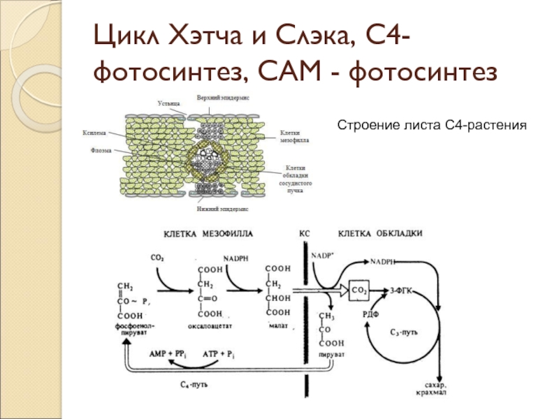 Слайд 23Цикл Хэтча и Слэка, С4-фотосинтез, САМ - фотосинтез