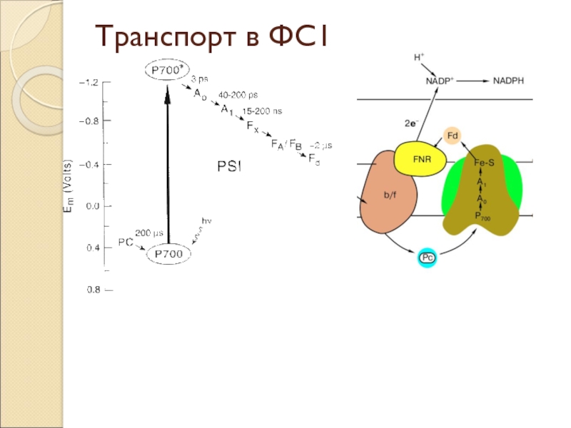 Электронный транспорт в мембране тилакойдовТранспорт в ФС2Фотолиз водыТранспорт в b/f комплексеТранспорт в ФС1