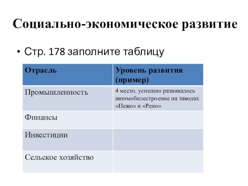 Социально-экономическое развитиеСтр. 178 заполните таблицу