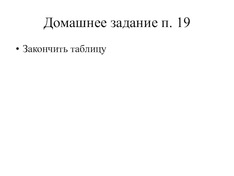 Домашнее задание п. 19Закончить таблицу