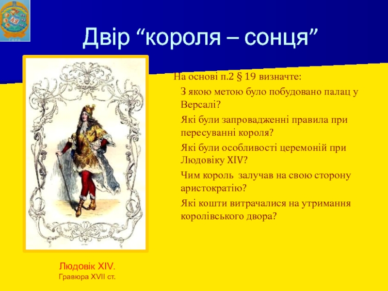 Людовіка XIV;Розвивати вміння працювати з текстовими джерелами інформації, встановлювати причинно – наслідкові зв”язки