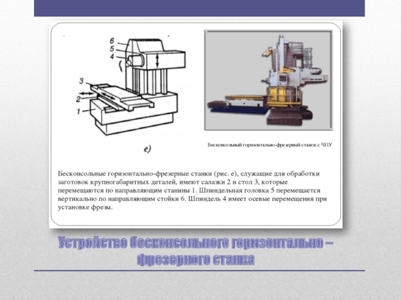 Слайд 10Устройство бесконсольного горизонтально – фрезерного станка