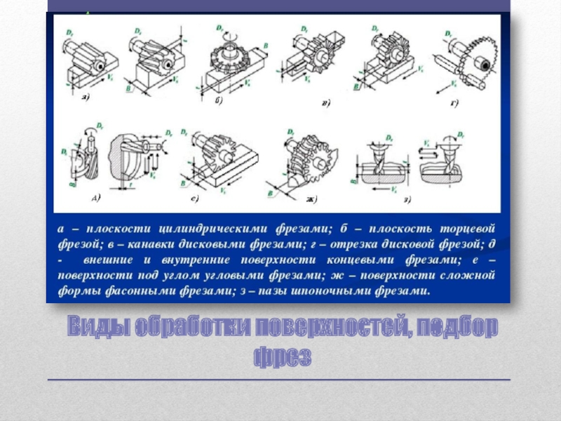 Слайд 19Виды обработки поверхностей, подбор фрез