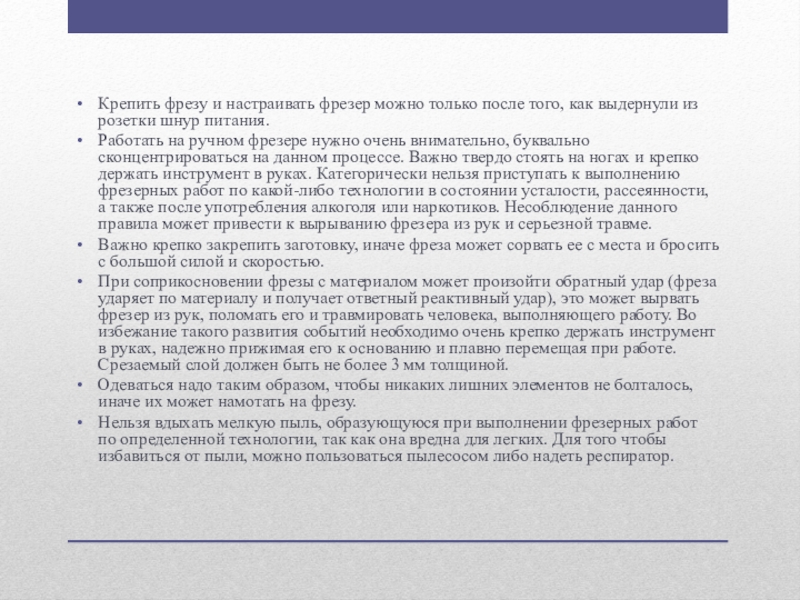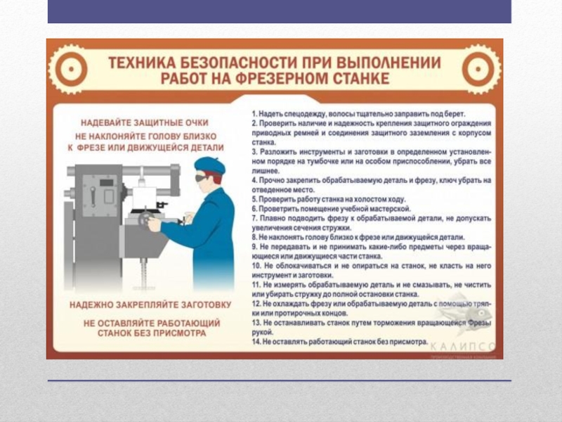 Слайд 33 Техника безопасности при выполнении фрезерных работ