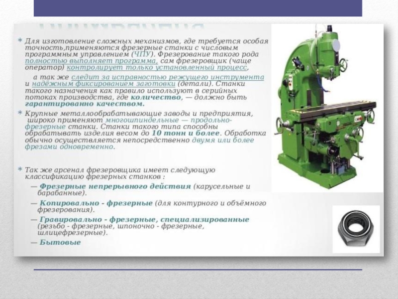 Слайд 24Фрезерная обработка на станке с числовым программным управлением (ЧПУ)