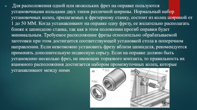 Слайд 10 Для расположения одной или нескольких фрез на оправке пользуются