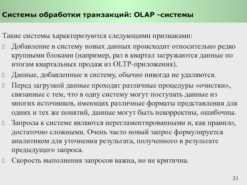 Слайд 24Системы обработки транзакций: OLAP -системы