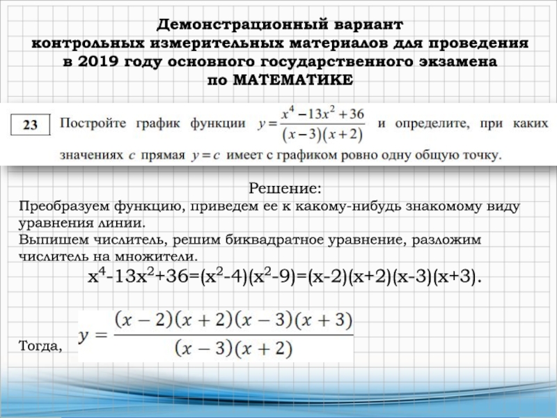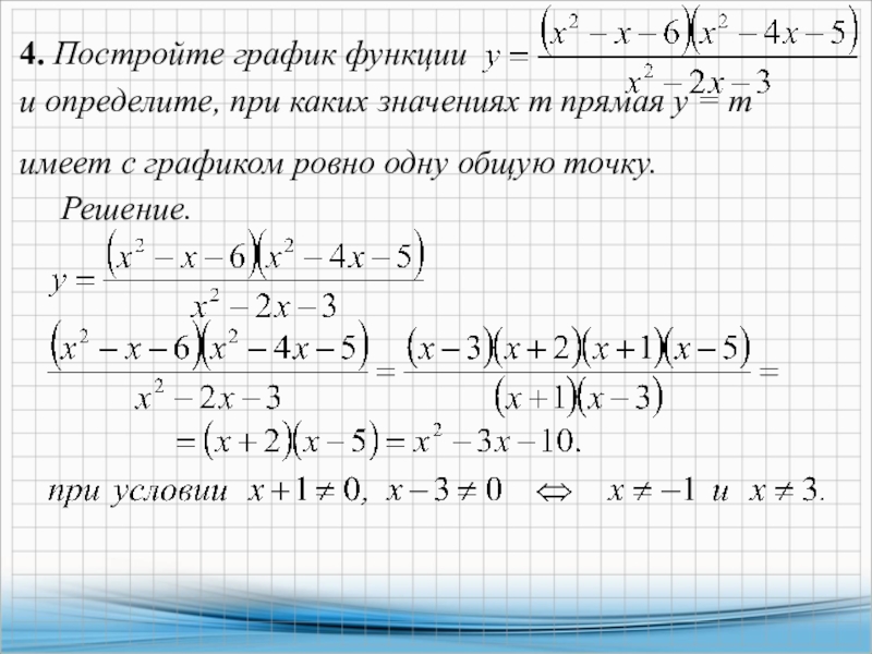 линии. Выпишем числитель, решим биквадратное уравнение, разложим числитель на множители.