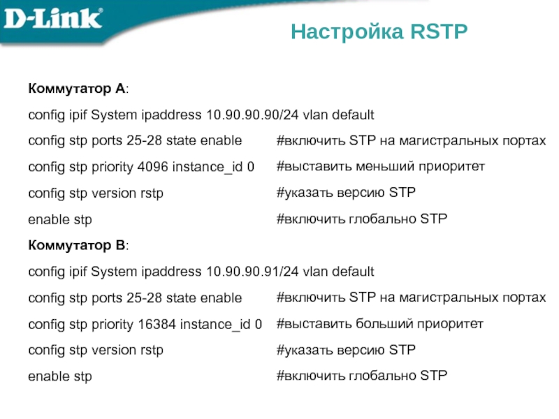 config stp priority 4096 instance_id 1