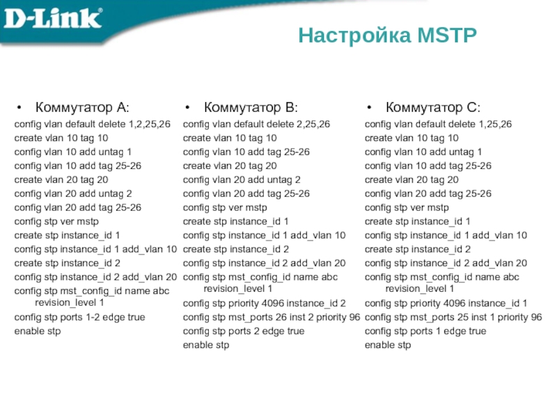config stp mst_config_id name abc revision_level 1