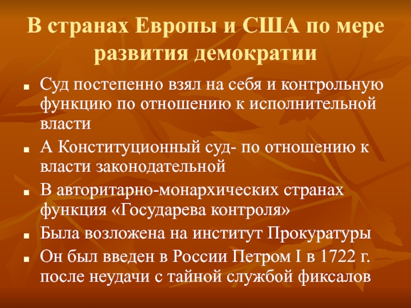 В авторитарно-монархических странах функция «Государева контроля»