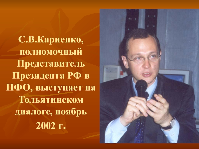 Слайд 31С.В.Кариенко, полномочный Представитель Президента РФ в ПФО, выступает на Тольятинском