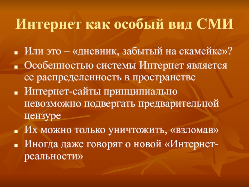 Слайд 27Интернет как особый вид СМИ