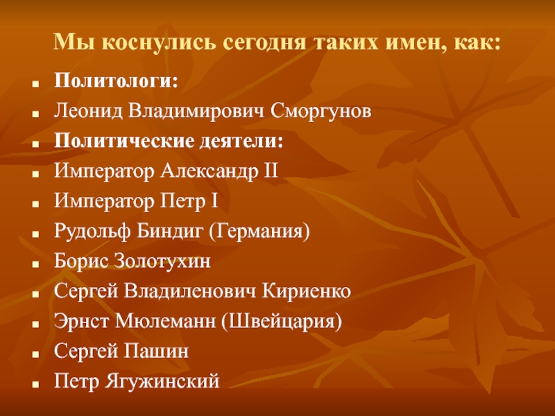 Слайд 36Мы коснулись сегодня таких имен, как: