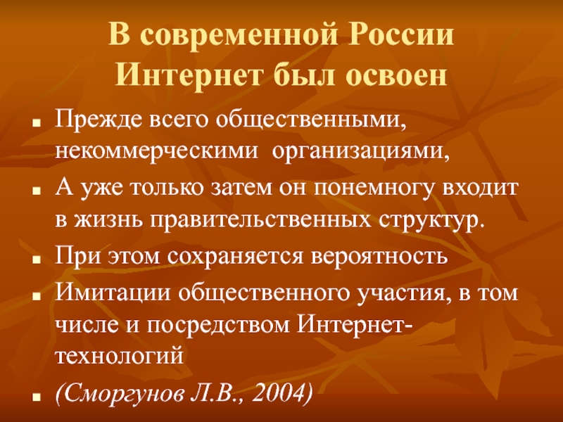 Слайд 29В современной России Интернет был освоен