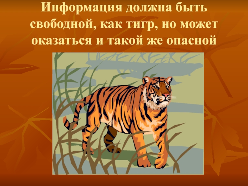 Слайд 26Информация должна быть свободной, как тигр, но может оказаться и