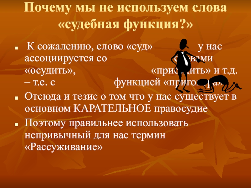 Слайд 2Почему мы не используем слова «судебная функция?»