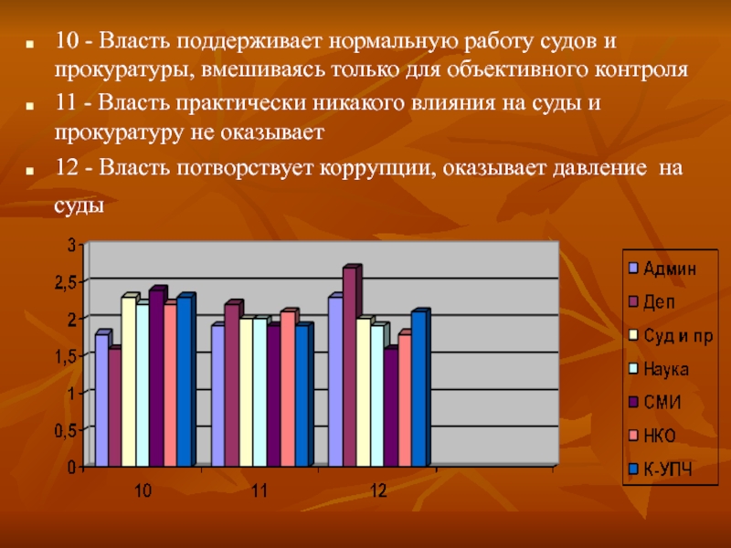 Слайд 3310 - Власть поддерживает нормальную работу судов и прокуратуры, вмешиваясь