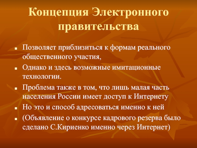 (Объявление о конкурсе кадрового резерва было сделано С.Кириенко именно через Интернет)