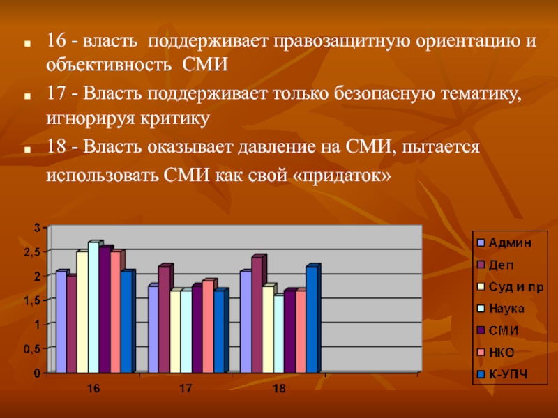 Слайд 3416 - власть поддерживает правозащитную ориентацию и объективность СМИ