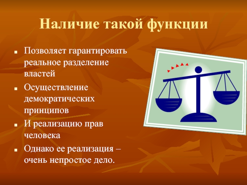 Позволяет гарантировать реальное разделение властей