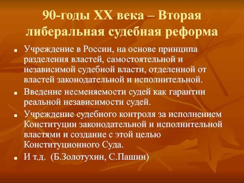 Слайд 990-годы ХХ века – Вторая либеральная судебная реформа