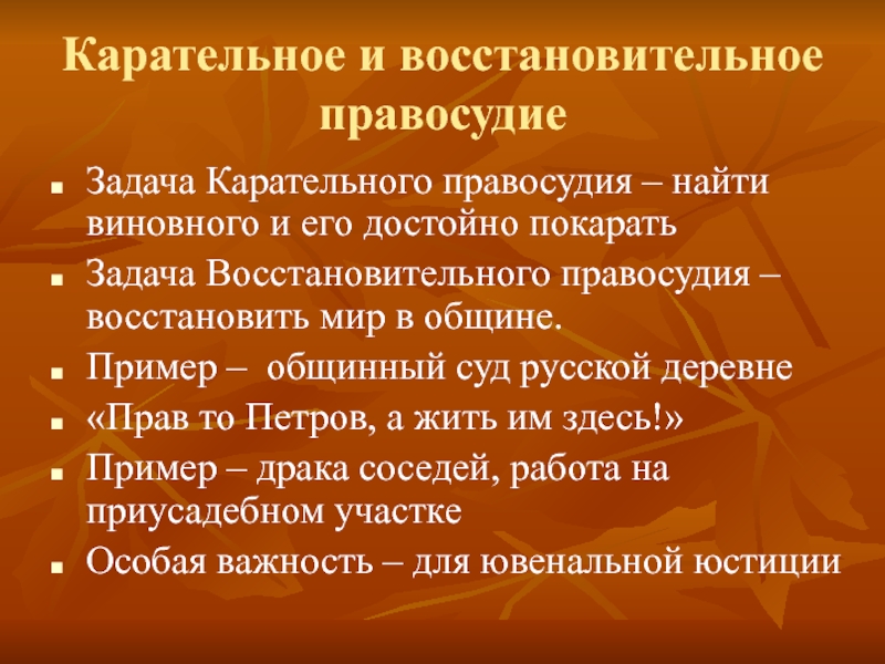 Слайд 12Карательное и восстановительное правосудие