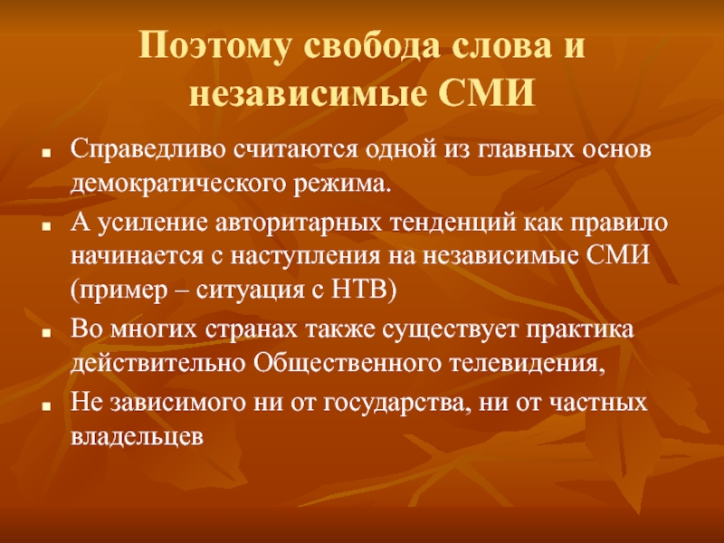 Слайд 25Поэтому свобода слова и независимые СМИ