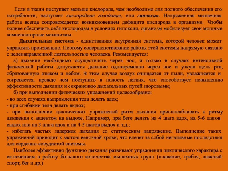 гипоксия. Напряженная мышечная работа всегда сопровождается возникновением дефицита кислорода в организме. Чтобы полнее обеспечить себя кислородам в условиях гипоксии, организм мобилизует свои мощные компенсаторные механизмы.
