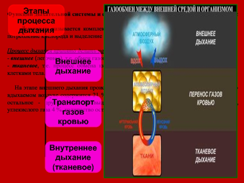 - тканевое, т.е. процесс обмена кислородом и углекислым газом между кровью и клетками тела.