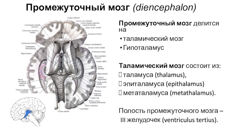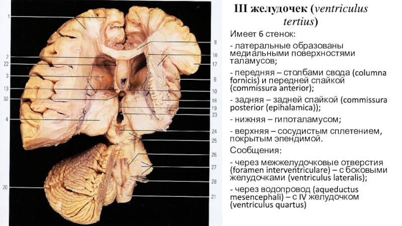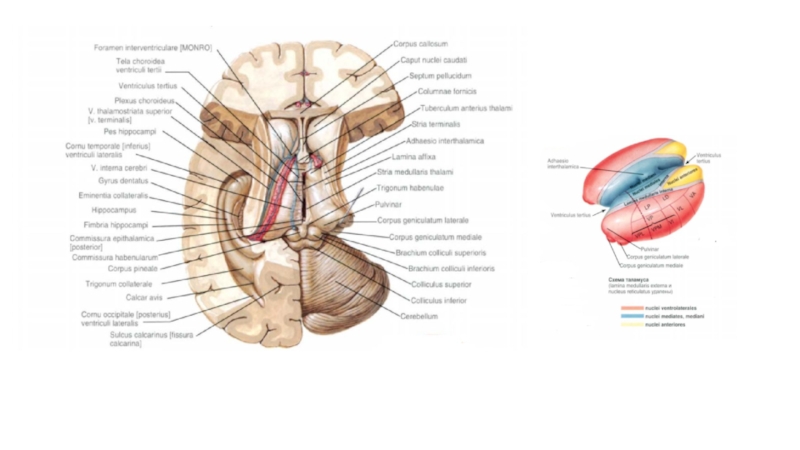 - между медиальными поверхностями таламусов имеется межталамическое сращение (adhesio interthalamica).