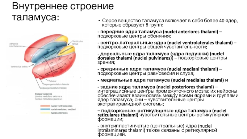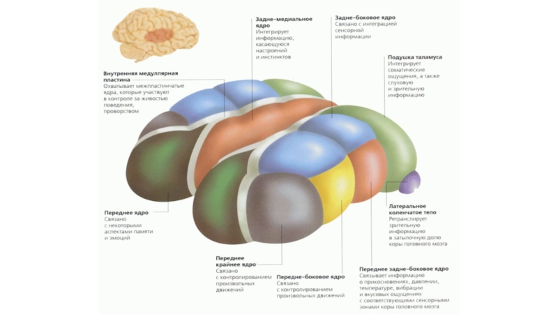 - медиальные и задние ядра обеспечивают интеграцию функций всех ядер таламуса;