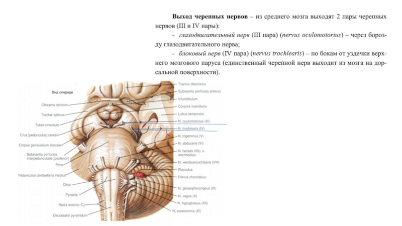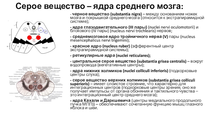 - ядра глазодвигательного (III пары) (nuclei nervi oculomotorii) и блокового (IV пары) (nucleus nervi trochlearis) нервов;