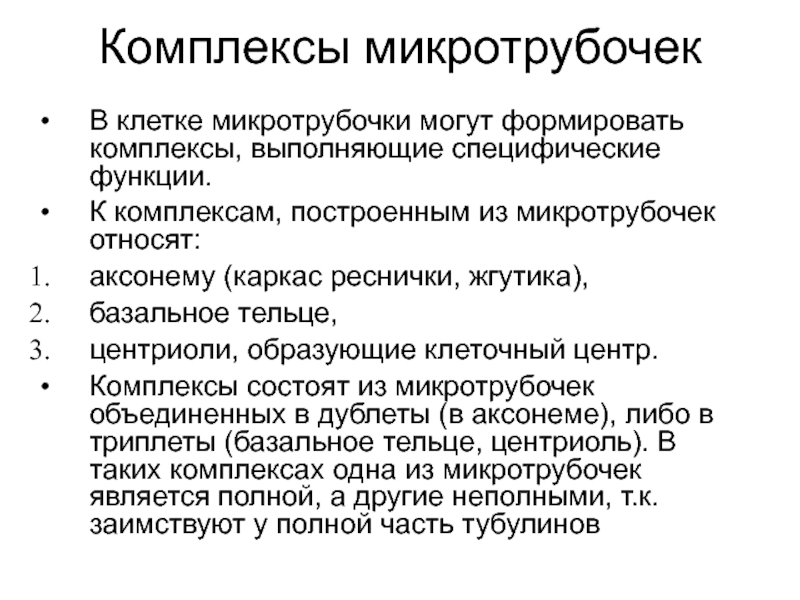 В клетке микротрубочки могут формировать комплексы, выполняющие специфические функции.