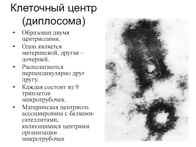 связанные с центриолями тельца (20-40 нм), являющиеся ЦОМТ.