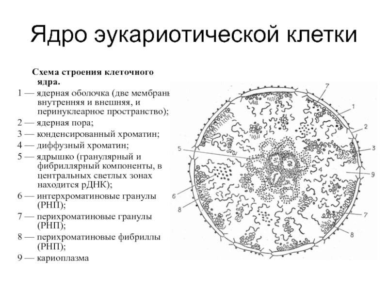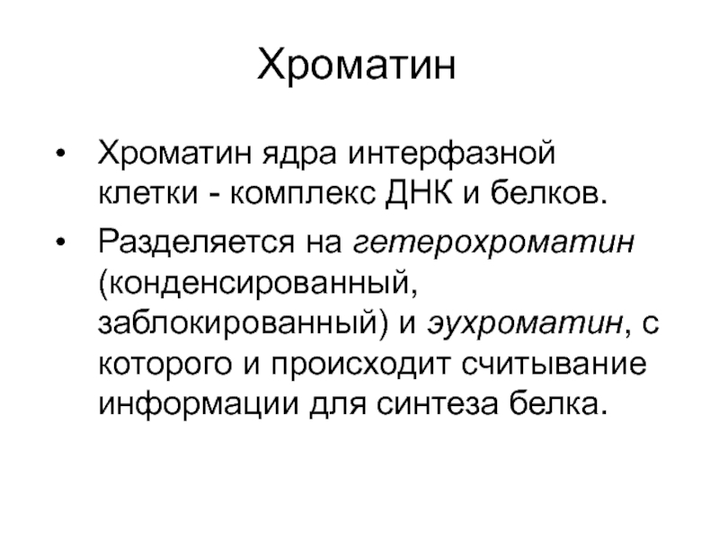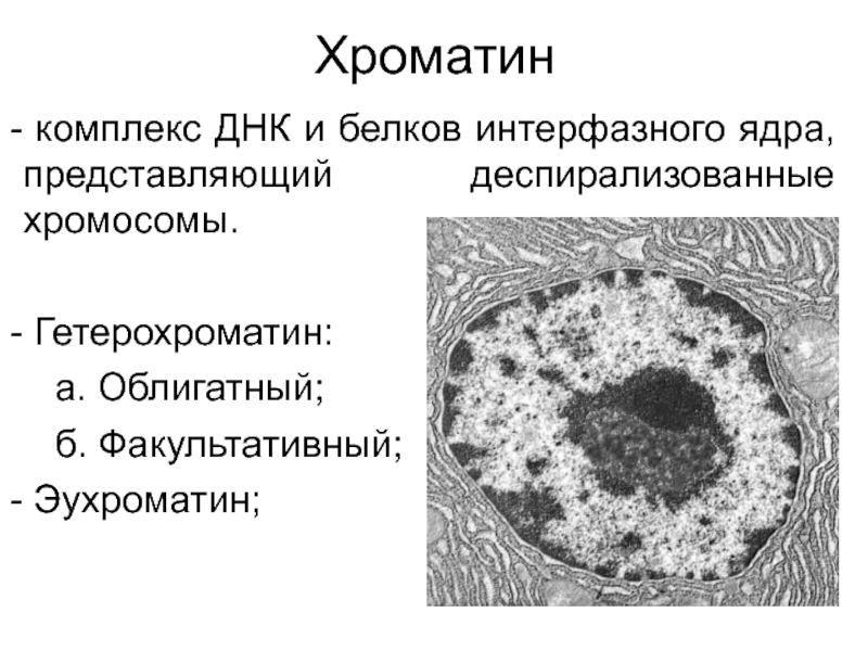 Хроматин ядра интерфазной клетки - комплекс ДНК и белков.