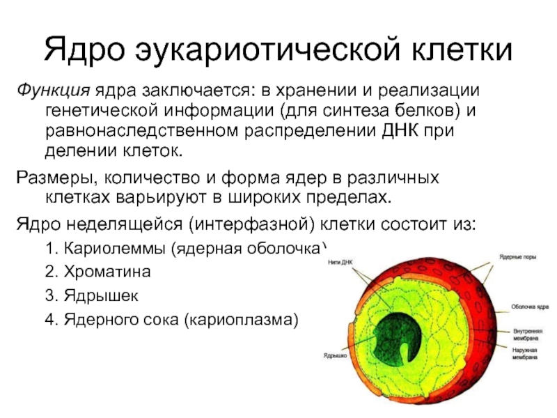Кариоплазма (ядерный сок, кариолимфа) - жидкий компонент ядра, в котором