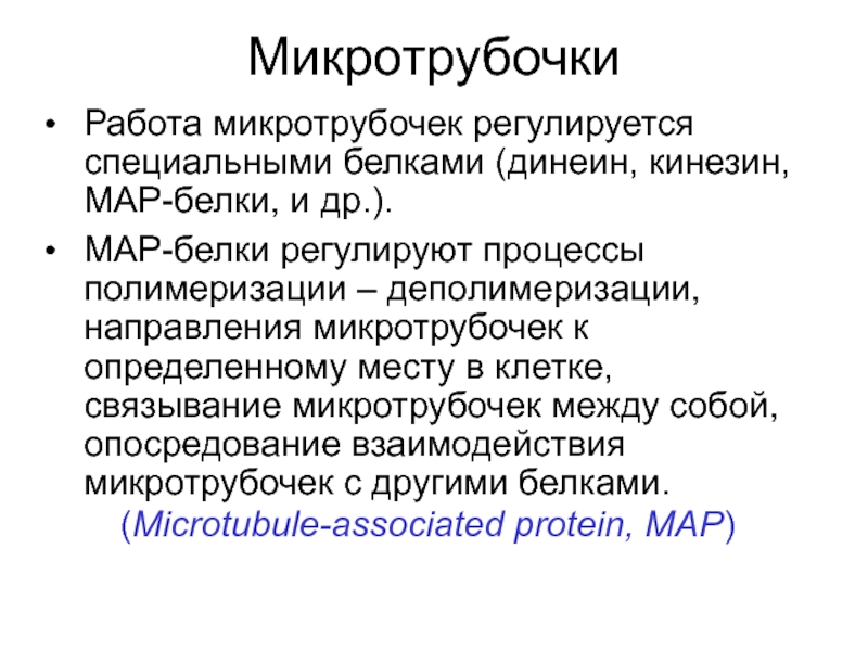 Работа микротрубочек регулируется специальными белками (динеин, кинезин, МАР-белки, и др.).