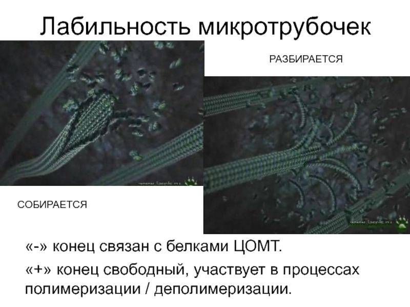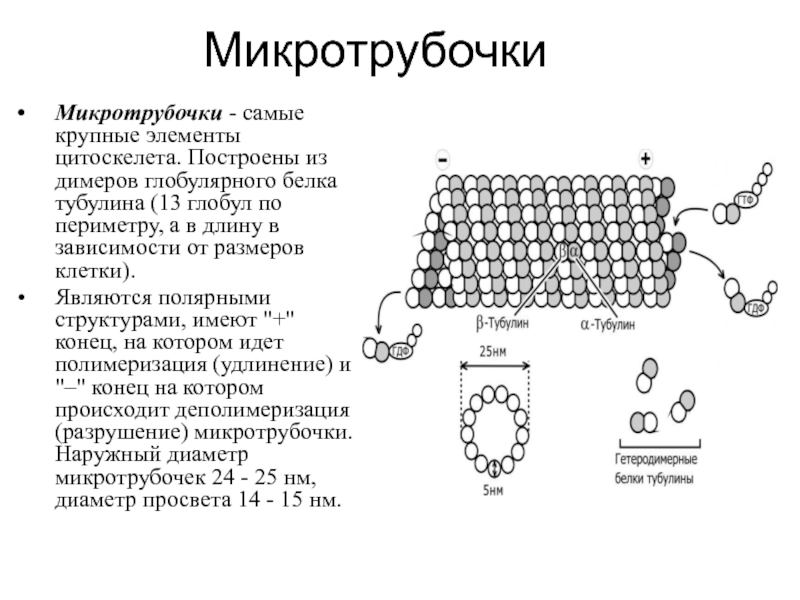 Микротрубочки - самые крупные элементы цитоскелета. Построены из димеров глобулярного