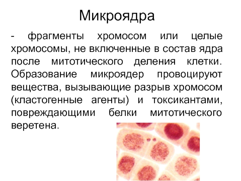 ядра после митотического деления клетки. Образование микроядер провоцируют вещества, вызывающие