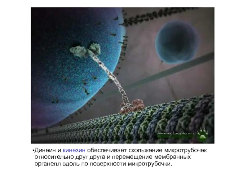 Слайд 9Динеин и кинезин обеспечивает скольжение микротрубочек относительно друг друга и